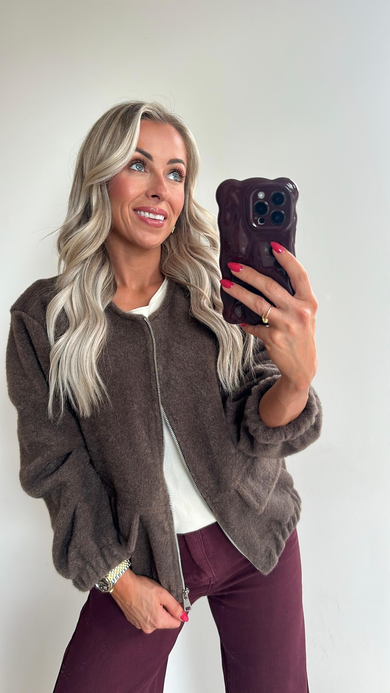 De BONNIE Bomber is een prachtig vestje dat je eindeloos kan combineren. De stof en de afwerking is echt ongezien! De BONNIE Bomber is verkrijgbaar in de kleuren burgundy en choco.