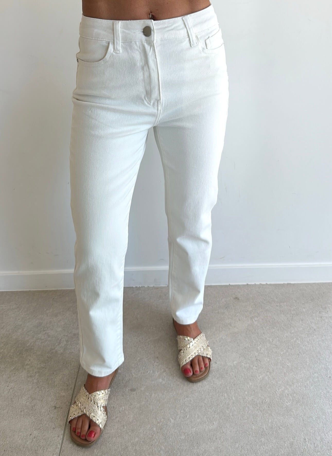 De MOM Jeans zit al jaren in onze collectie! Een echte bestseller! Deze jeans is super elastisch en zacht en zit hierdoor mega comfy aan! De beige MOM Jeans zit iets ruimer dan de andere MOM jeans modellen.