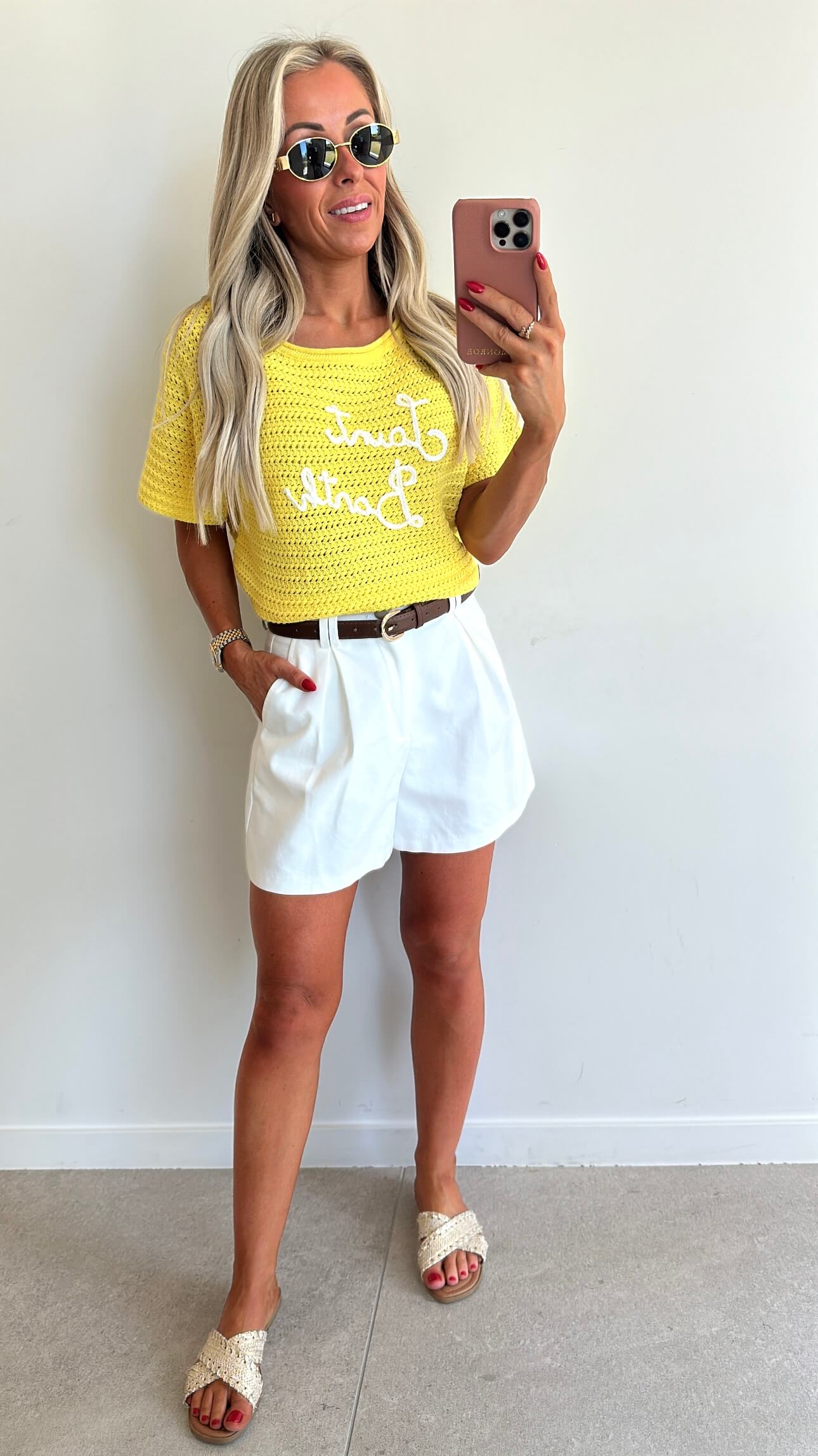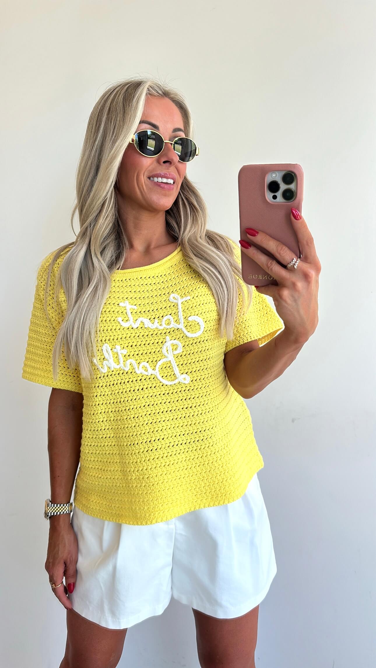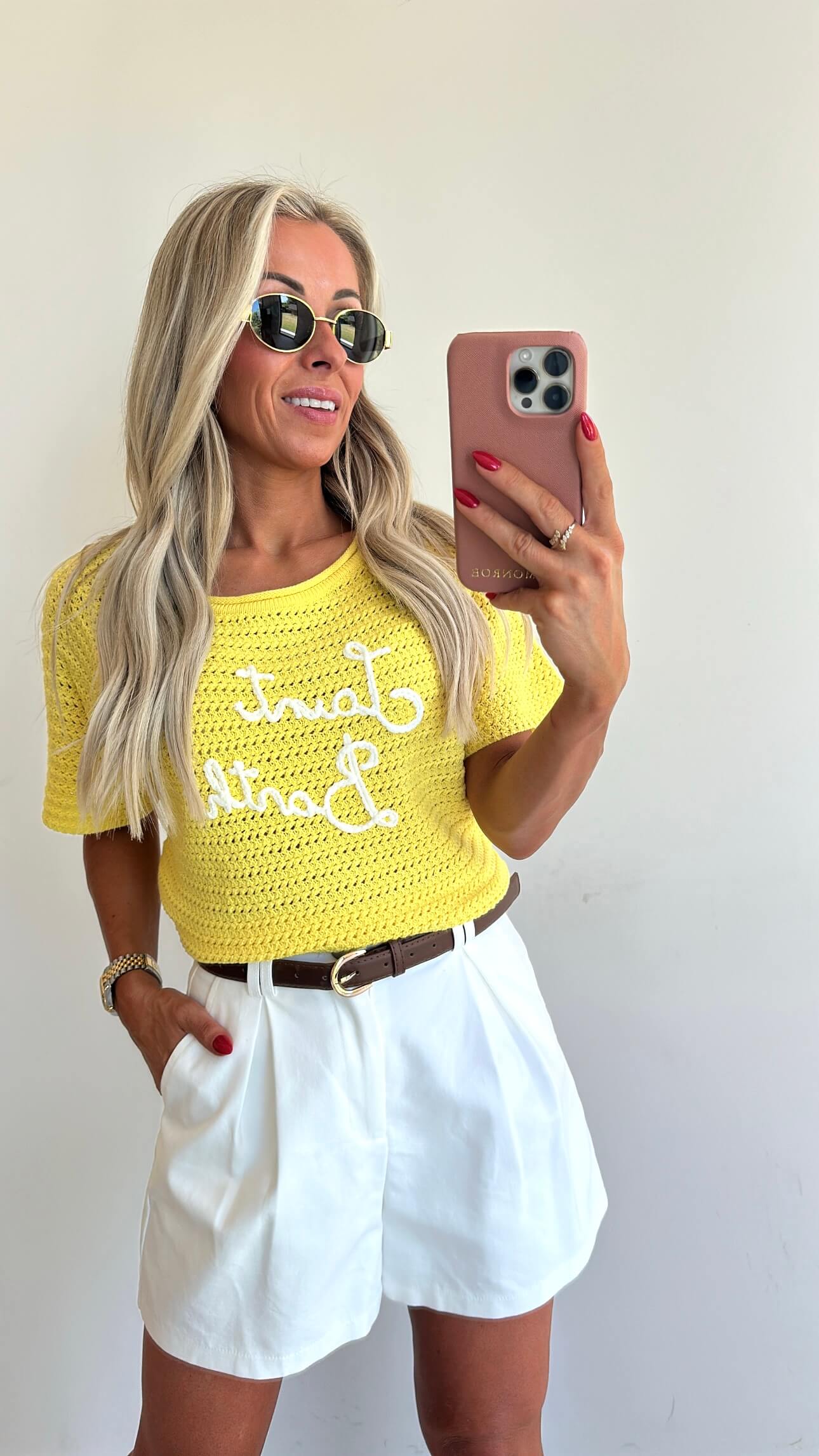 De SAINT BARTH Top is een prachtige top die je eindeloos kan combineren! De top is beschikbaar in de kleuren; marine/yellow/pink.