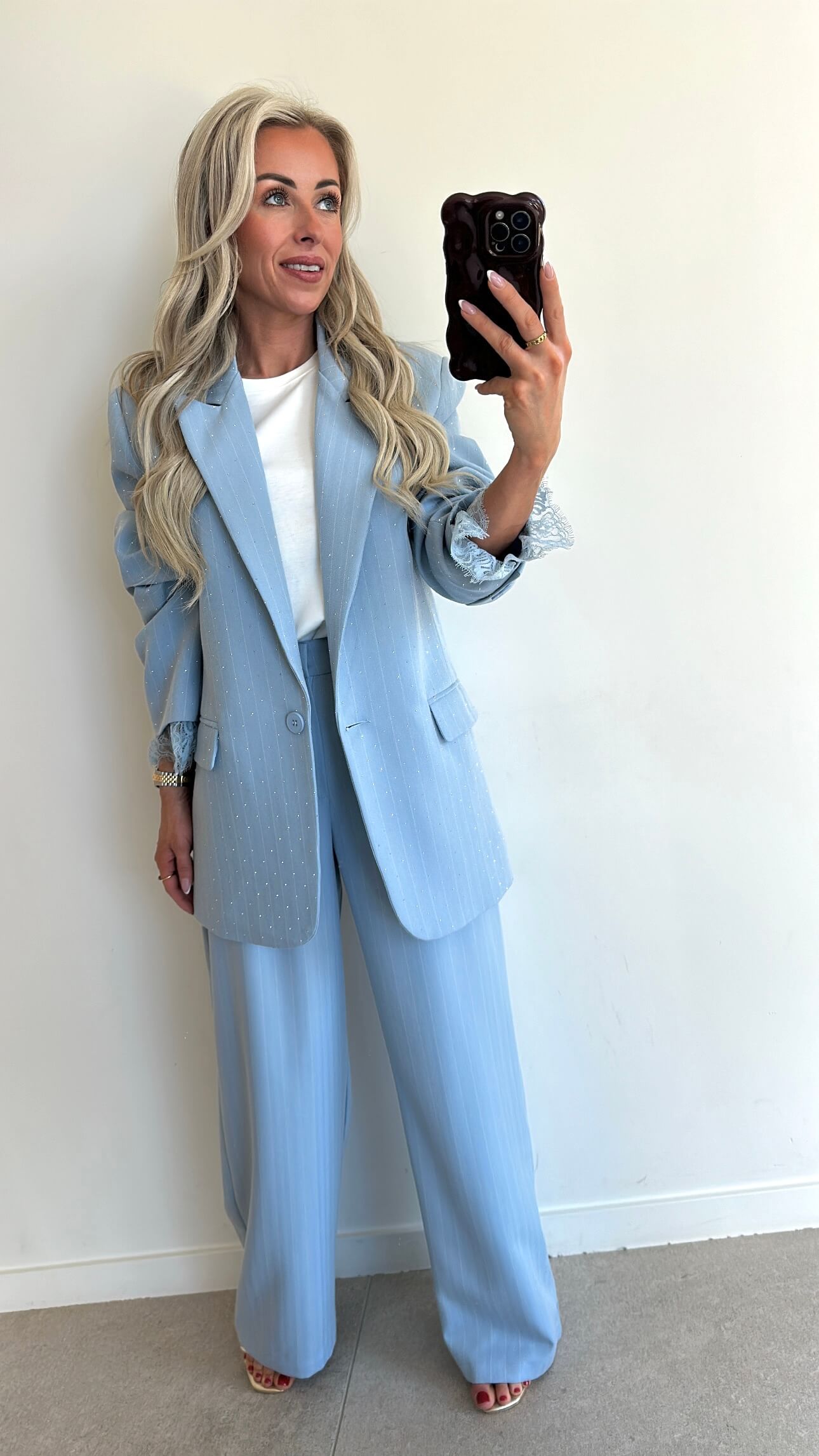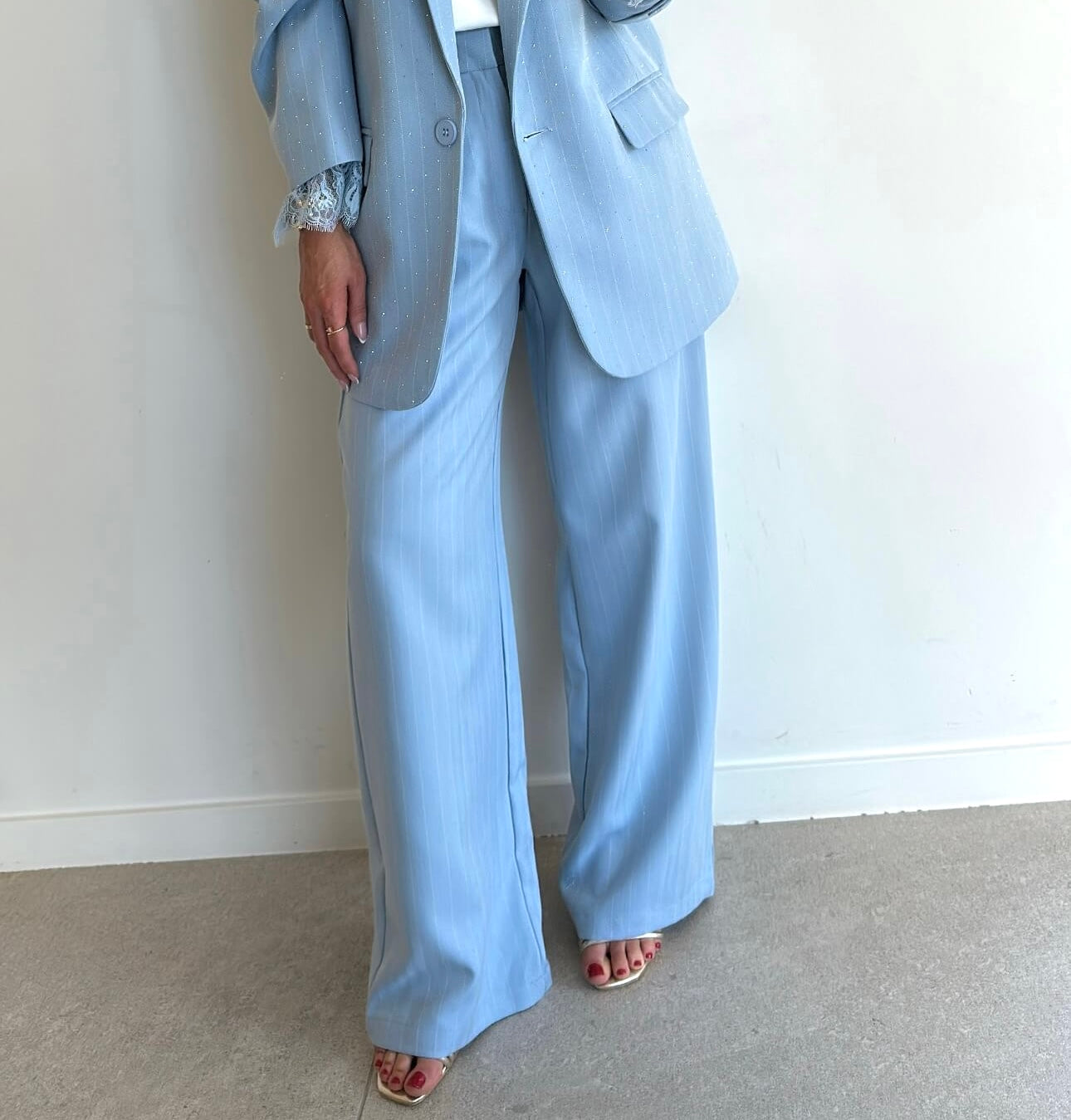 De STEVIE Pants is een prachtig & vooral comfy kostuum broekje. Perfect match met onze bijpassende STEVIE Blazer sky blue. Deze broek combineer je prima met een leuke basic T-shirt, top of blouse.
